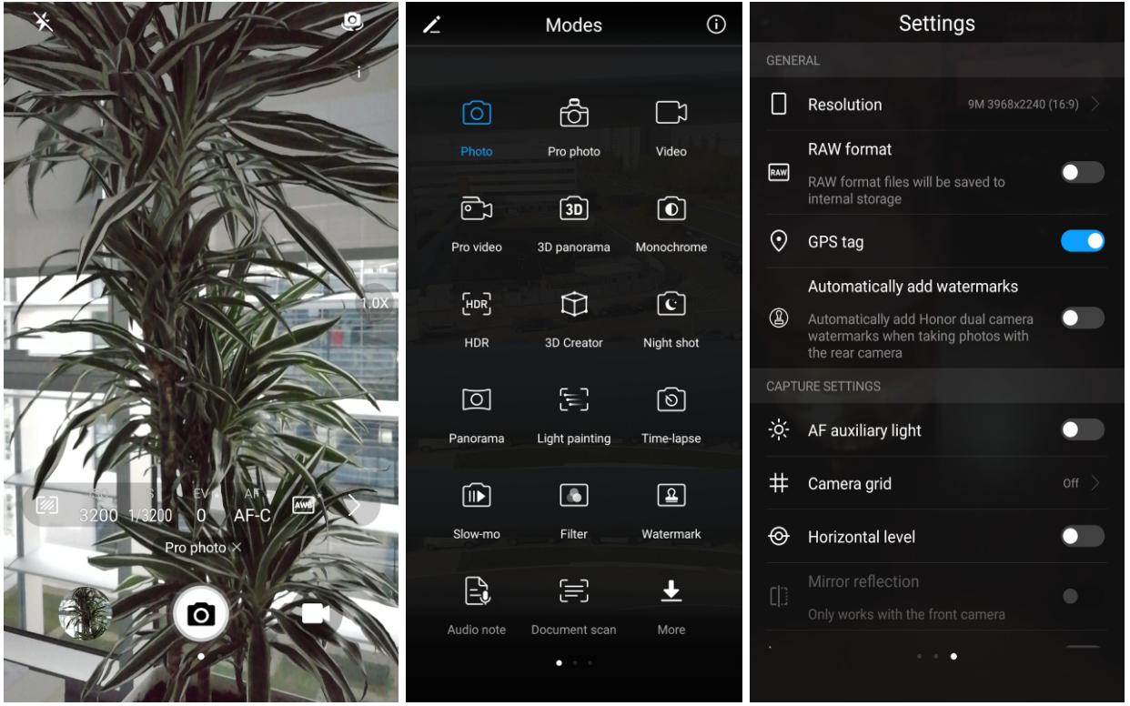 Jedan od zadataka monohromatske 20MP kamere je da uhvati više svetla i stopi se sa RGB kamerom te kao rezultat daje 20 MP fotografije u boji sa izuzetnim dinamičkim kontrastom. Dakle, kamere rade u tandemu i donose najbolje što se može izvući sa ovim sočivima. Kao i kamera na P10 i Honor 9 ima 12 MP + 20 MP (monohromatska), sa otvorom blende f/ 2.2. Aplikacija za kameru reaguje brzo, instantno je spremna za rad, a šanse da ćete dobiti zamućenu fotografiju su vrlo male.