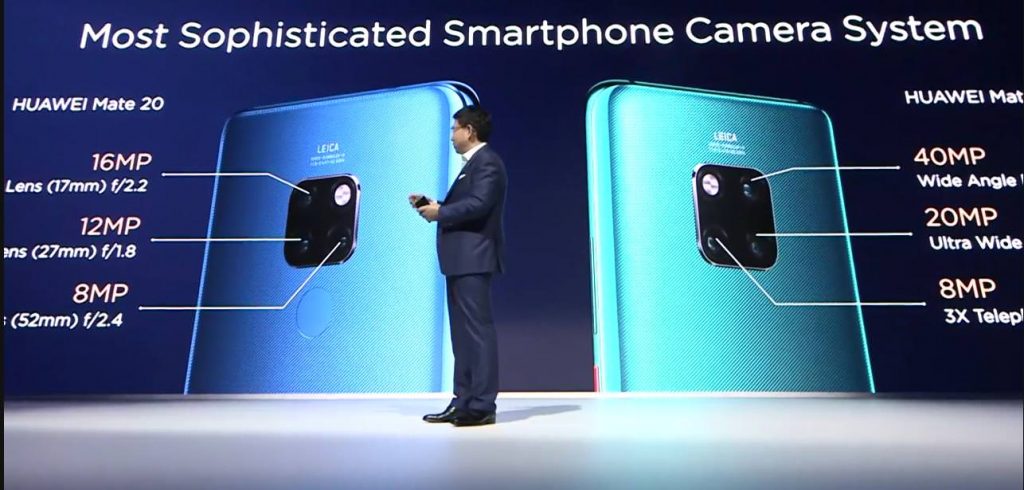 Mate 20 Pro ima nešto bolji setup kamera 40 Mpix RBG + 20 Mpix MH + 8 Mpix