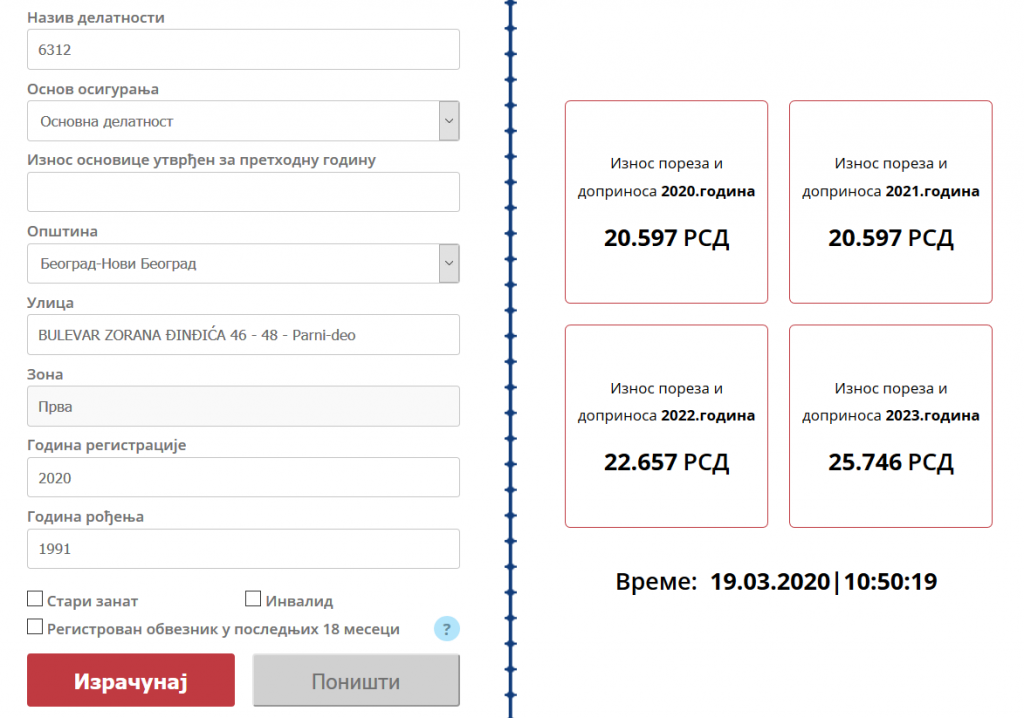 Na sajtu ePorezi objavljen je kalkulator poreza i doprinosa. Najbolje od svega, obračun je tačan, možete biti sigurni da odstupanja neće biti veća od 1%.